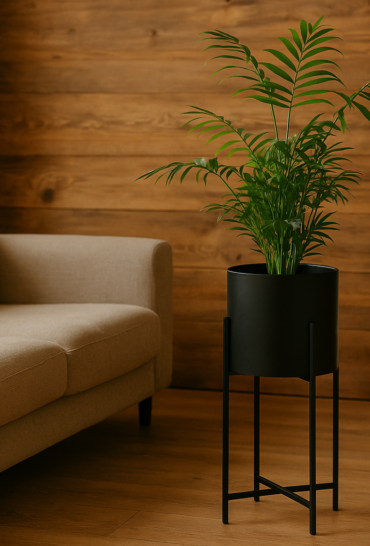 Czy czarna metalowa donica sprawdzi się jako dekoracja w salonie?